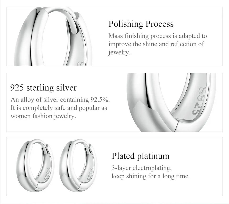 BAMOER σκουλαρίκια κρίκοι BSE924, ασήμι 925, ασημί