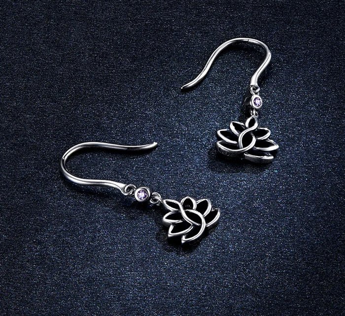 Σκουλαρίκια κρεμαστά με σχήμα κουκουνάρι, κατασκευασμένα από οξειδωμένο ασήμι 925, διακοσμημένα με αστραφτερή κυβική ζιρκόνια μωβ χρώματος.