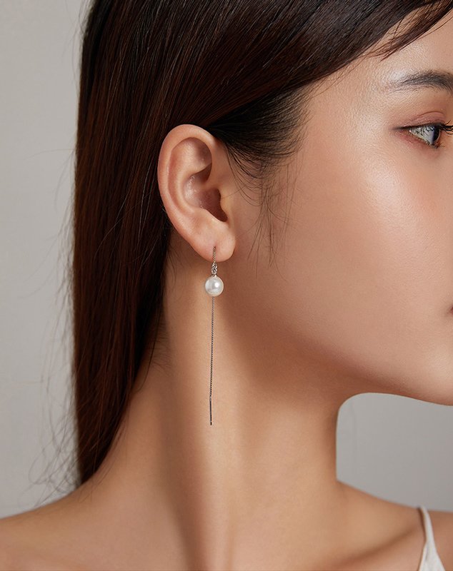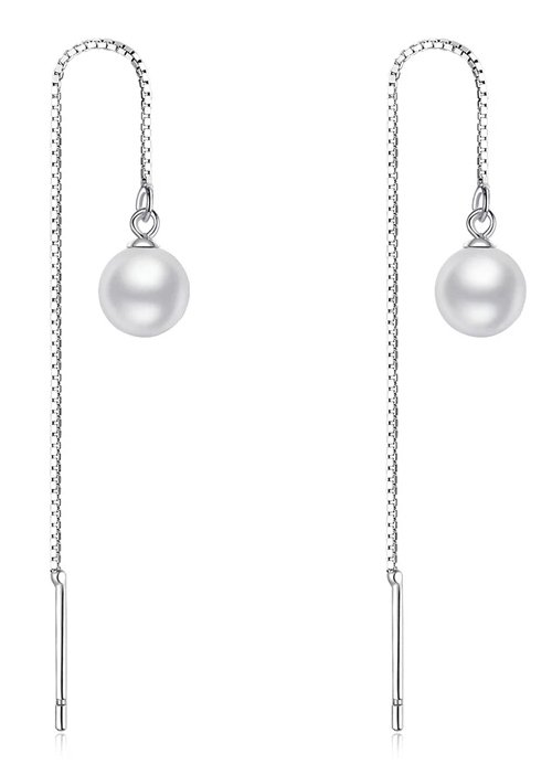 Κομψά, κρεμαστά σκουλαρίκια Bamoer κατασκευασμένα από ασήμι 925, επιπλατινωμένα, διακοσμημένα με εντυπωσιακή λευκή πέρλα.