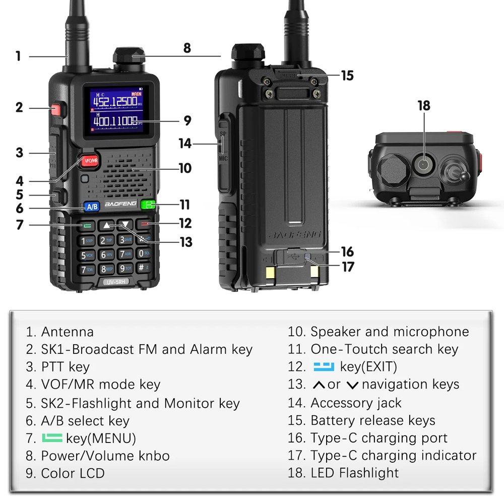 Ασύρματος πομποδέκτης UV-5RH της BAOFENG που προσφέρει απομακρυσμένη επικοινωνία μέσω δύο ζωνών συχνοτήτων (VHF/UHF).