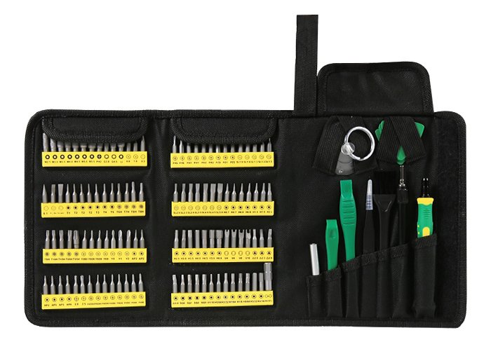1x screwdriver set (M2.5, M3.0, M3.5, M4.0, M4.5, M5.0, M5.5, G3.8, G4.5, U, 0.8, 1.0, 0.3, 0.1, Pry bar, Scrapper, T1, T2, T3, T4, T5, T6H, T7H, 2x T8H, T9H, T10H, T15H, T20H, T25H, 2x Y000, Y00, Y0000, Y0, Y1, Y2, 3x AP2, 2AP5, AP6, 2.0, 2.0, 3x PH0000, 3x PH000, 2x PH00, 2x PH0, 2x PH1, 2x PH2, PZ0, PZ1, PZ2, 2x SL1.0, 2x SL1.3, SL1.5, SL2.0, SL2.5, SL3.0, SL3.5, SL4.0, SL4.5, SL5.0, 2x H0.7, 2x H0.9, H1.3, H1.5, H2.0, H2.5, H3.0, H3.5, H4.0, H4.5, H5.0, H6.0, U4, U6, U8, U10, 2.0, 2.3, 2.6, 3.0, SQ0, SQ1, SQ2, SQ3, H1/16, H5/64, H3/32, H7/64, H1/8, H9/64, H5/32, H3/16, H4-H1/4