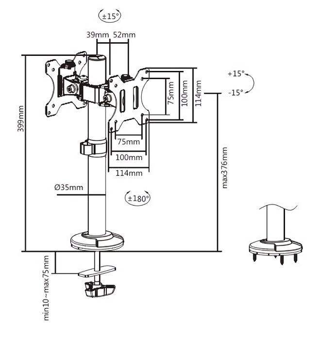 Suggested Desktop Thickness: 10~75mm (0.39″~3″)