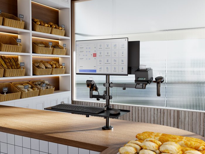 BRATECK βάση γραφείου για 2x οθόνες PMM-02LD, 17-32″, με θέση για POS/printer/scanner/πληκτρολόγιο