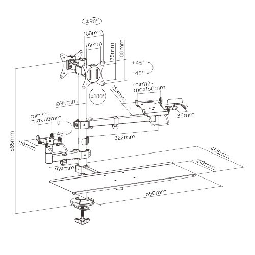Πλήρης επέκταση βραχίονα: 103mm