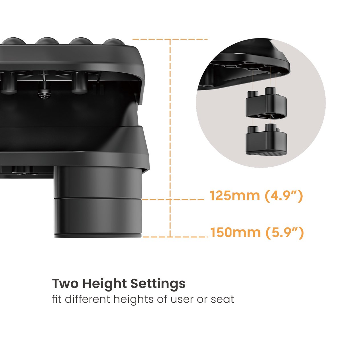 Διαθέτει 2 επίπεδα ρύθμισης ύψους για την ιδανική τοποθέτηση ανάλογα με τις ανάγκες σας.