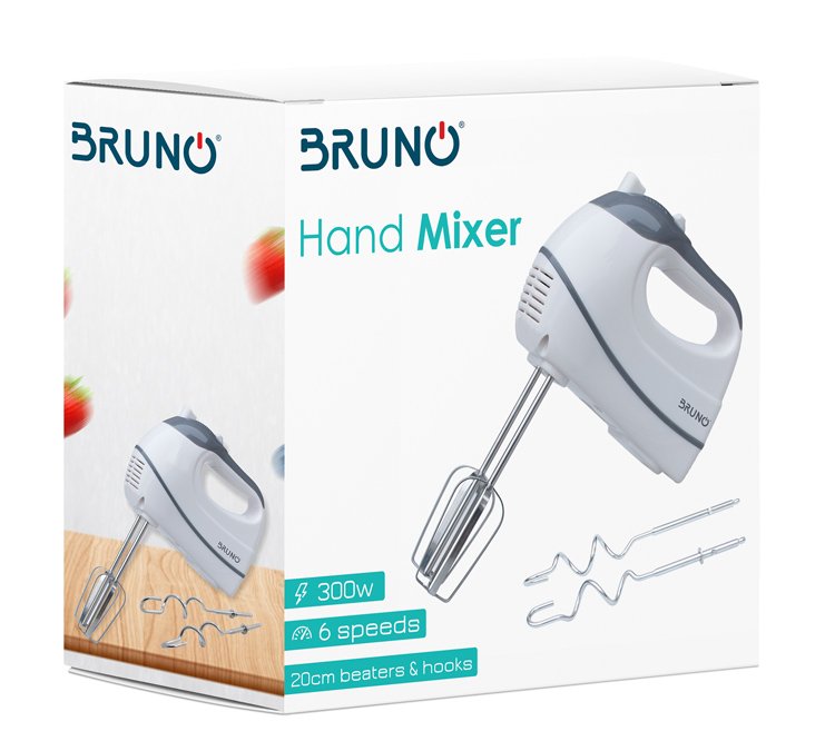 BRUNO Μίξερ χειρός, 6 ταχύτητες, 20cm αναδευτήρες & ζυμωτήρες, 300W