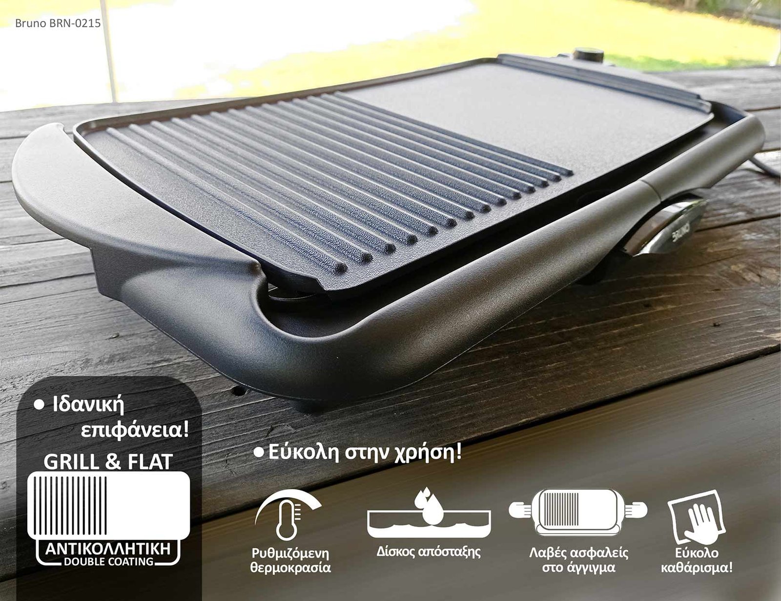 -Επιφάνεια ψησίματος: Πλάκα με αντικολλητική επίστρωση (επίπεδη & γκριλ)