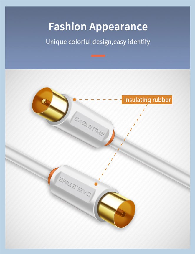 CABLETIME καλώδιο κεραίας CT-AV101, 75OHM, 2m, λευκό