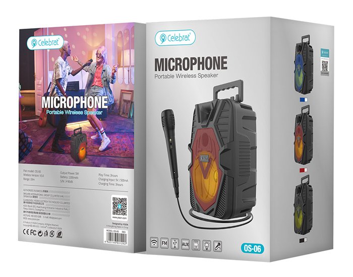 Ασύρματο φορητό ηχείο της Celebrat με ενσύρματο μικρόφωνο για να μετατρέψετε τις συναντήσεις με τους φίλους σας, σε ένα διασκεδαστικό karaoke party.