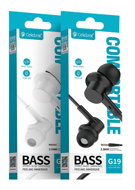 CELEBRAT earphones με μικρόφωνο G19, 3.5mm σύνδεση, Φ10mm, 1.2m, μαύρα