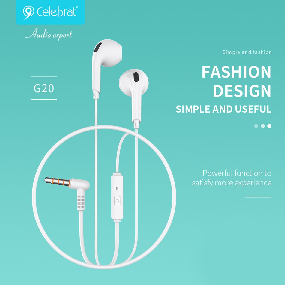 CELEBRAT earphones με μικρόφωνο G20, 3.5mm σύνδεση, Φ14mm, 1.2m, λευκά