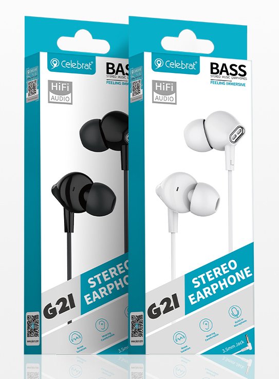 CELEBRAT earphones με μικρόφωνο G21, 3.5mm σύνδεση, Φ12mm, 1.2m, μαύρα