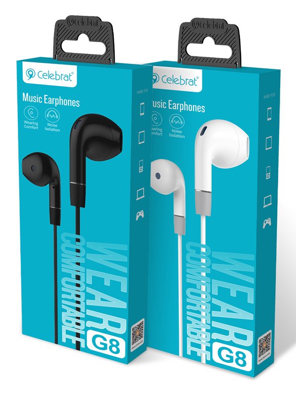 CELEBRAT earphones με μικρόφωνο G8, 3.5mm σύνδεση, Φ14.2mm, 1.2m, λευκά