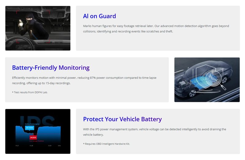 Εξοπλίζεται με αισθητήρα βαρύτητας, χάρη στον όποιο ξεκινά αυτόματα την καταγραφή σε περίπτωση τρακαρίσματος είτε το όχημα βρίσκεται εν κίνηση, είτε είναι σταθμευμένο.