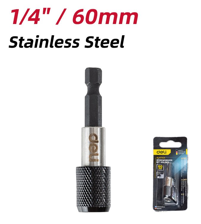 Αντάπτορας της DELI με εξάγωνη υποδοχή για την τοποθέτηση μυτών κατσαβιδιού. Είναι κατάλληλος για χρήση με με δράπανο ή ηλεκτρικό κατσαβίδι.