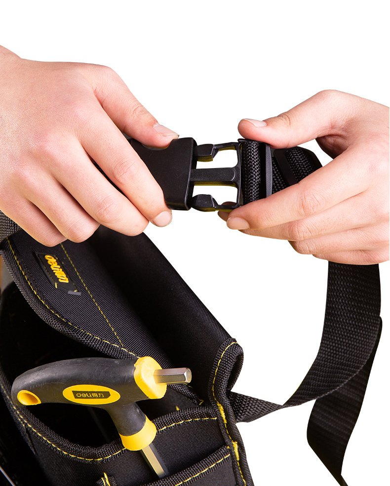 Εργαλειοθήκη μέσης πολλαπλών θέσεων της Deli, ιδανική για την αποθήκευση διαφόρων εργαλείων χειρός.