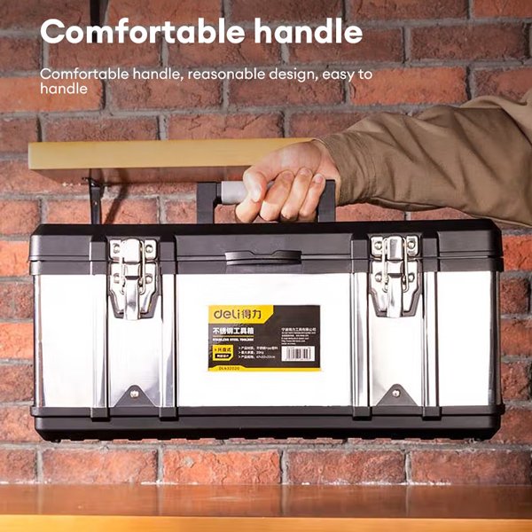 DELI εργαλειοθήκη 35716, μεταλλικό κούμπωμα, 40x18x18cm, ασημί