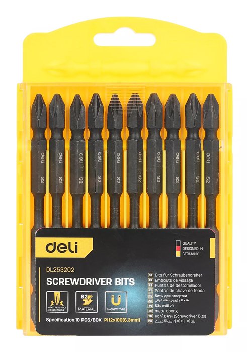 DELI μύτες κατσαβιδιού DL253202 για δράπανο, σταυρωτές, PH2x100mm, 10τμχ