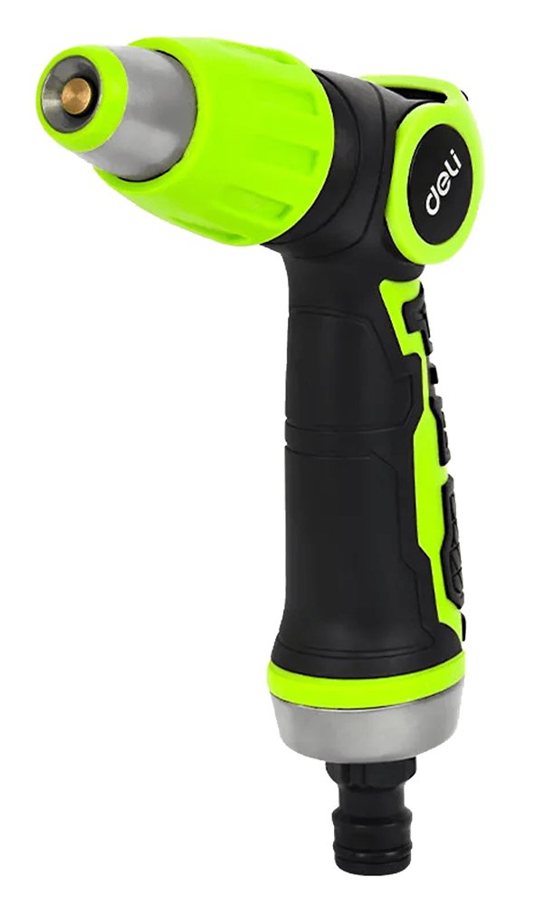 Πιστόλι εκτόξευσης νερού της Deli με 3 λειτουργίες ψεκασμού. Διαθέτει αντιολισθητική λαβή που εφαρμόζει καλά στο χέρι για πιο ξεκούραστο πότισμα.