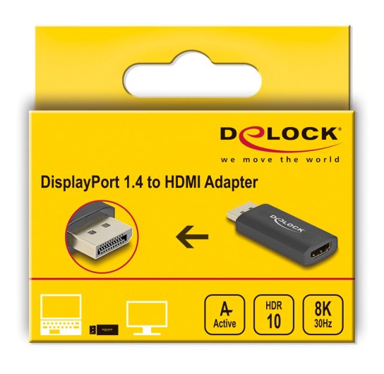 Αυτός ο αντάπτορας της Delock επιτρέπει τη σύνδεση μιας οθόνης, ενός προτζέκτορα ή μιας τηλεόρασης με HDMI διεπαφή, με μια συσκευή με ελεύθερη διεπαφή DisplayPort. Είναι μικρός σε μέγεθος, γεγονός που τον καθιστά ιδανικό για ταξίδια.