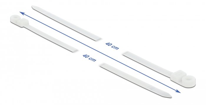 DELOCK Δεματικά καλωδίων 18948 με οπή στερέωσης, 400×7.6mm, λευκά, 10τμχ