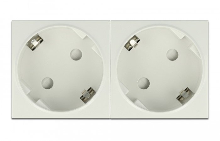Διπλή πρίζα ρεύματος της σειράς Easy 45 της Delock για παροχή ρεύματος CEE 7/3, με γωνία 45°.