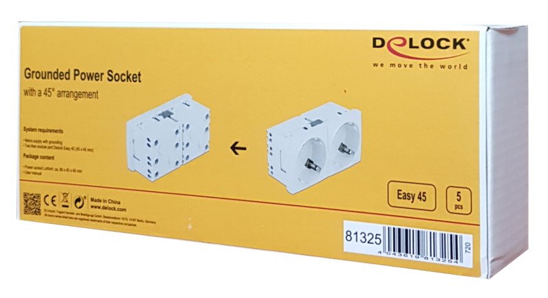 DELOCK διπλό module πρίζας ρεύματος Easy 45 81325, 45°, 45x45mm, 5τμχ