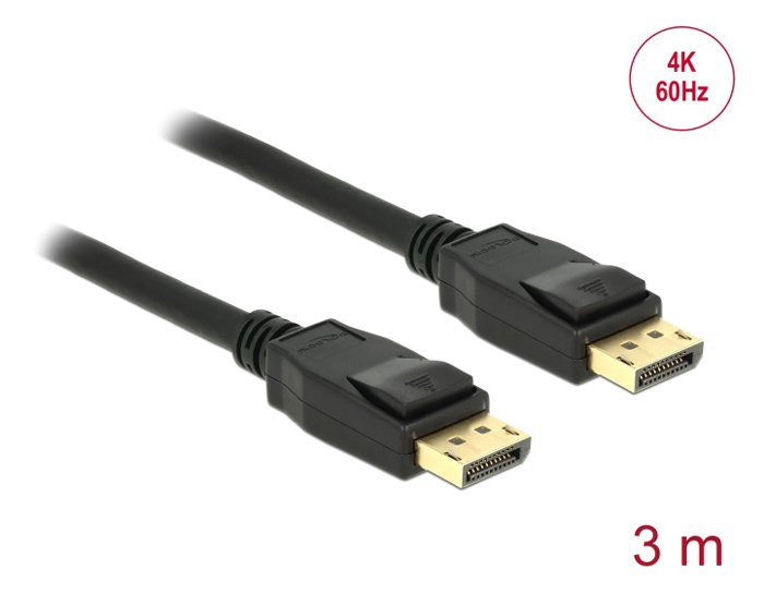 DELOCK καλώδιο DisplayPort 1.2 83807, 4K/60Hz, 21.6 Gbps, 3m, μαύρο