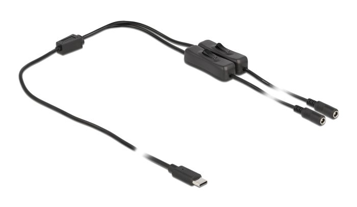 DELOCK καλώδιο USB Type-C σε 2x DC 5.5 x 2.1mm 86800, 1m, μαύρο