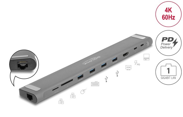 Το 87895 είναι ένα πλήρες docking station 9 θυρών της Delock, για την σύνδεση των περιφερειακών του laptop σας.