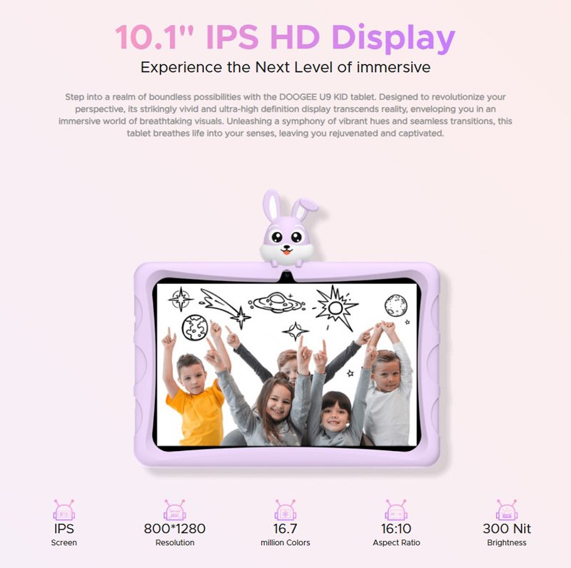 Το tablet U9 KID της DOOGEE είναι ένα tablet, ειδικά σχεδιασμένο για παιδιά. Με μεγάλη οθόνη 10.1″, ευέλικτο σύστημα λειτουργικού Android 13 και τετραπύρινο επεξεργαστή, το U9 KID προσφέρει μια πηγή διασκέδασης και μάθησης για το παιδί.