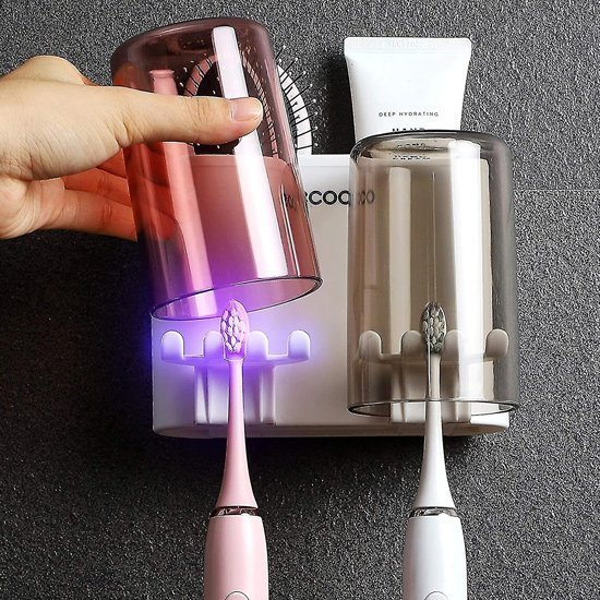 Διαθέτει 2 διάφανα ποτήρια και 2 θήκες όπου μπορούν να τοποθετηθούν οδοντόβουρτσες, οδοντόκρεμες ή αλλά αντικείμενα υγιεινής.