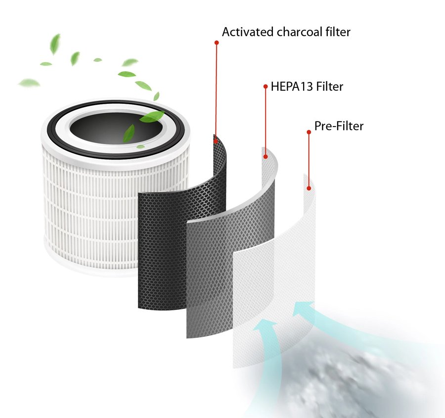 Αποτελείται από προ-φίλτρο, φίλτρο HEPA13 και φίλτρο ενεργού άνθρακα και έχει διάρκεια ζωής περίπου 6 μήνες με τυπική καθημερινή χρήση.