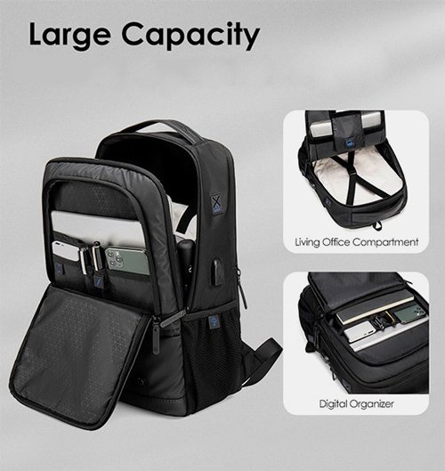 GOLDEN WOLF τσάντα πλάτης GB00402, με θήκη laptop 15.6″, 20-25L, μαύρη