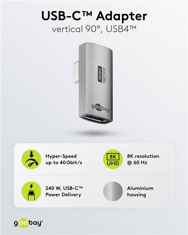 GOOBAY αντάπτορας USB-C 74443, γωνιακός 90°, USB4, 240W, 40Gbps, 8K, γκρι