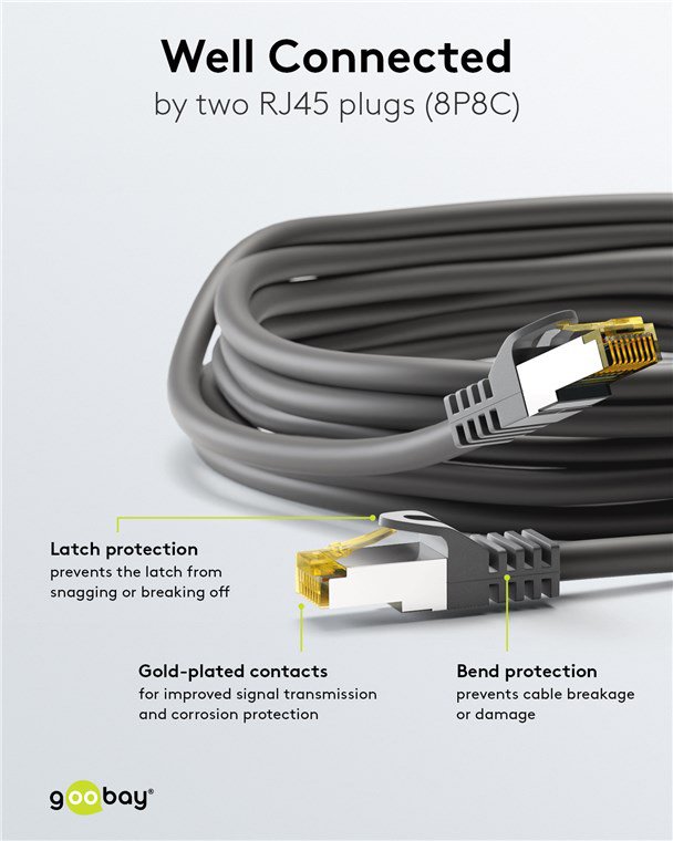 Τα καλώδια δικτύου της Goobay κατασκευάζονται από ποιοτικά υλικά, με τις υψηλότερες τεχνικές προδιαγραφές, προσφέροντας αξιόπιστη λειτουργία υψηλής απόδοσης, με αντοχή στον χρόνο.