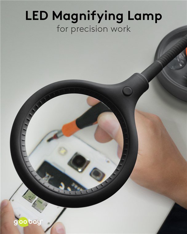 GOOBAY μεγεθυντικός φακός 64990 με κλιπ & βάση, LED, 3 διόπτρες 1.75x