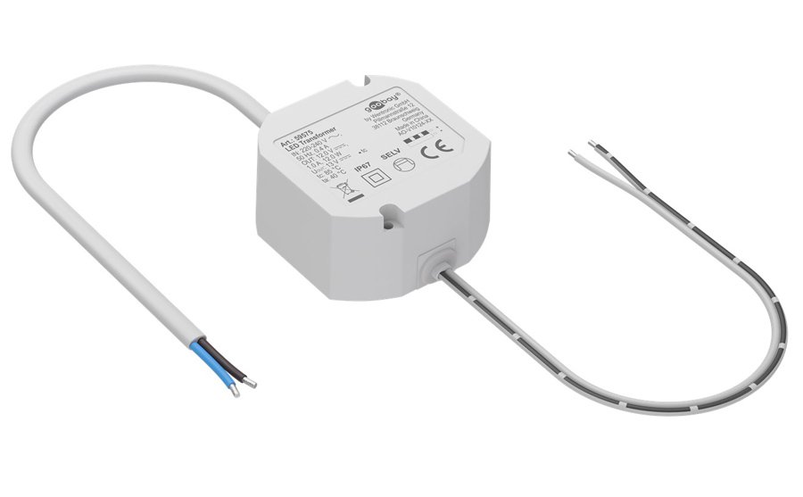 Μετασχηματιστής της Goobay με απόδοση έως 12W, κατάλληλος για την τροφοδοσία LED φωτιστικών και καλωδιοταινίων.