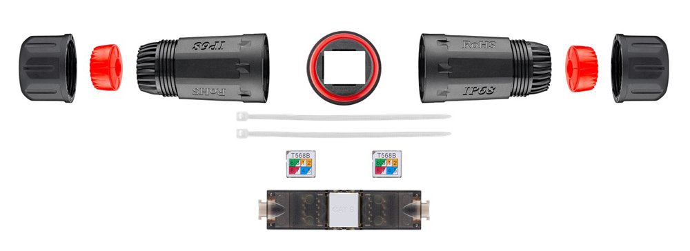 Σύνδεσμος της Goobay, ιδανικός για την σύνδεση ή την επέκταση δύο καλωδίων δικτύου χωρίς την χρήση εργαλείων. Είναι εξαιρετικά ανθεκτικός με αδιάβροχη προστασία IP68.