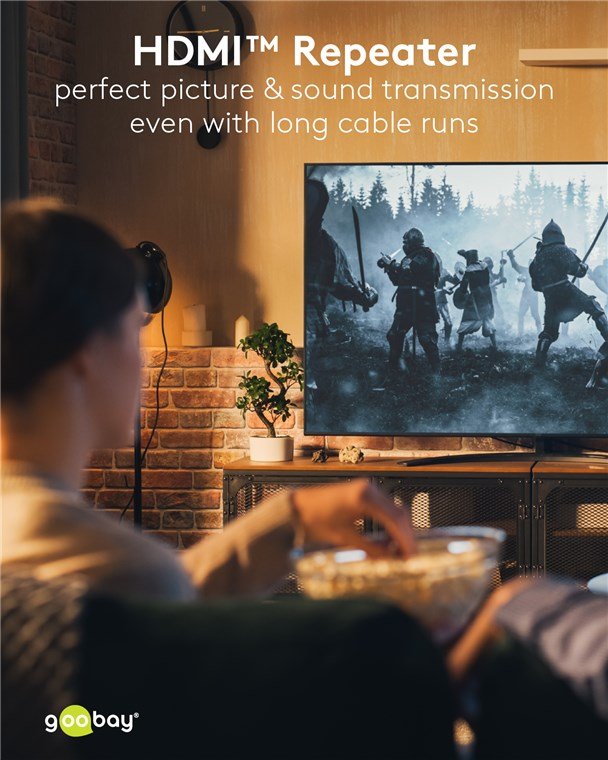 Το HDMI repeater της Goobay ενισχύει το σήμα μετάδοσης σε συνδέσεις συσκευών εισόδου όπως PC με συσκευές εξόδου όπως οθόνες για αποστάσεις έως 40 μέτρων.