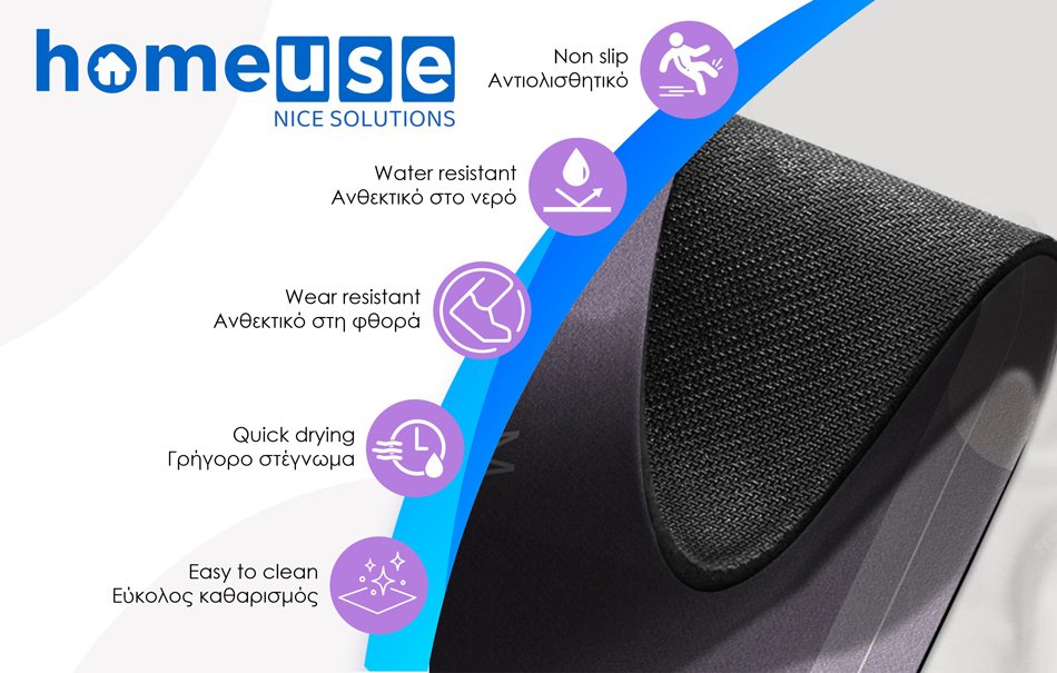 Πατάκι HOME USE για την κουζίνα, με αντιολισθητική επιφάνεια, για επιπλέον σταθερότητα. Είναι κατασκευασμένο από ύφασμα με καουτσούκ επιφάνεια στο κάτω μέρος, που προσφέρουν εξαιρετική αντοχή στη φθορά και το νερό.