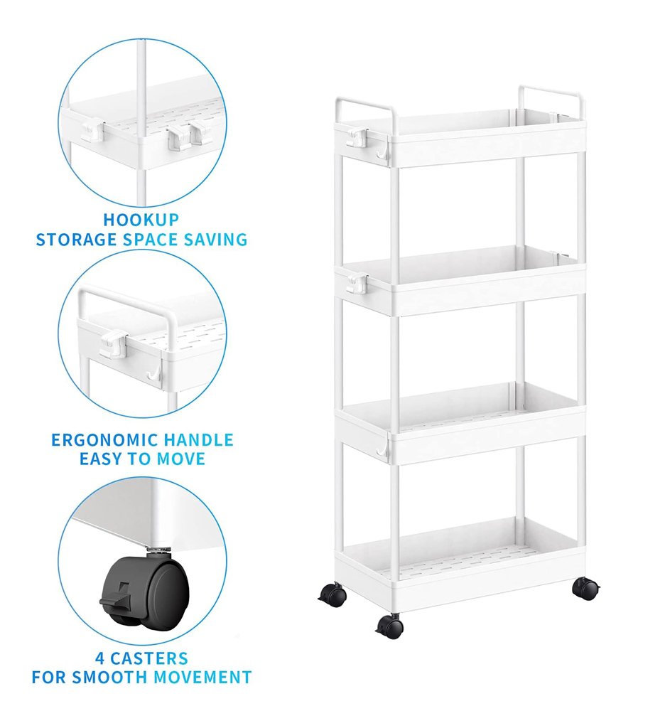 Τρόλει κουζίνας με 4 ράφια για την αποθήκευση και οργάνωση τροφίμων και αντικειμένων.