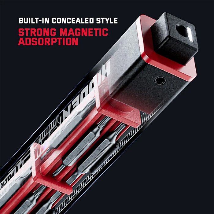Χάρη στον έξυπνο σχεδιασμό του, οι μύτες τοποθετούνται στο εσωτερικό του κατσαβιδιού, για να έχετε πάντα, εύκολα και άμεσα, την μύτη που χρειάζεστε.