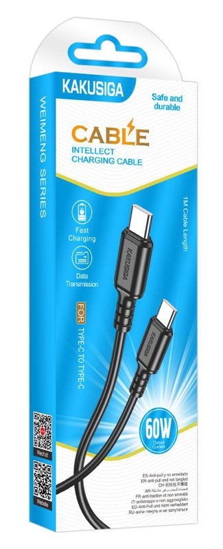 KAKUSIGA καλώδιο USB-C σε USB-C KSC-982, 60W, 480Mbps, 1m, μαύρο