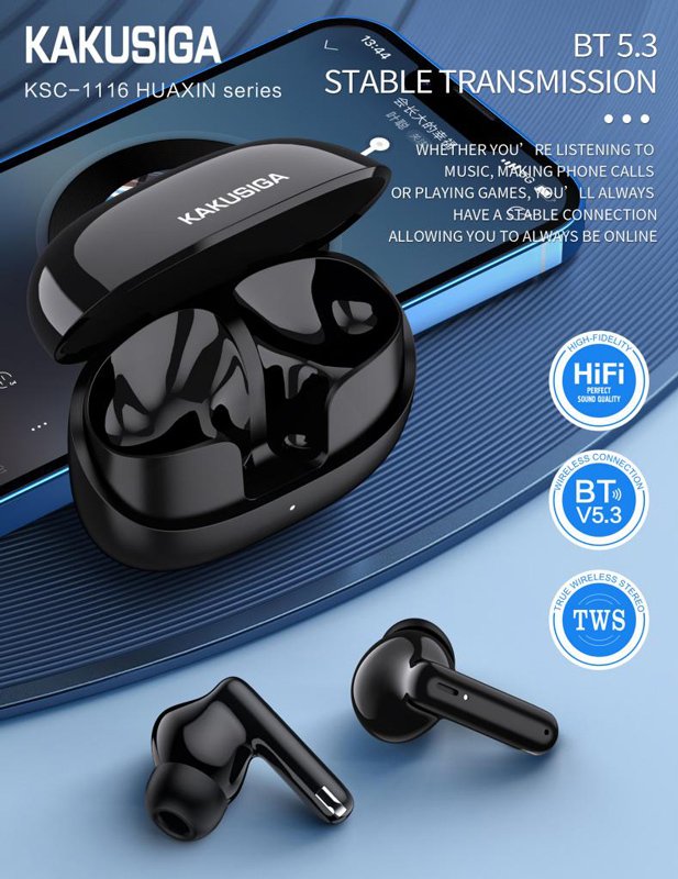 Τα true wireless earphones της KAKUSIGA προσφέρουν κορυφαία ποιότητα ήχου και άριστη εφαρμογή στο αυτί. Είναι συμβατά με tablets, smartphones και άλλες συσκευές που διαθέτουν Bluetooth.