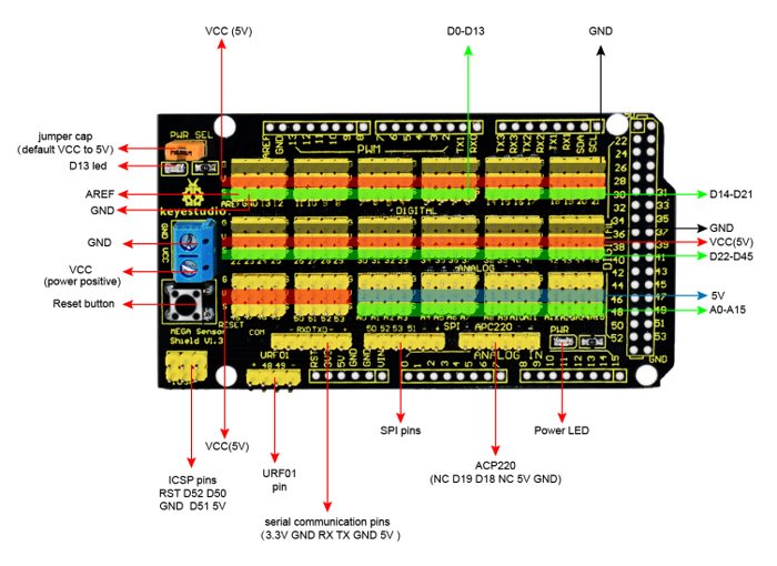 MEGA sensor shield V1 της Keyestudio. Είναι πλήρως συμβατό με την πλακέτα ελέγχου MEGA 2560.