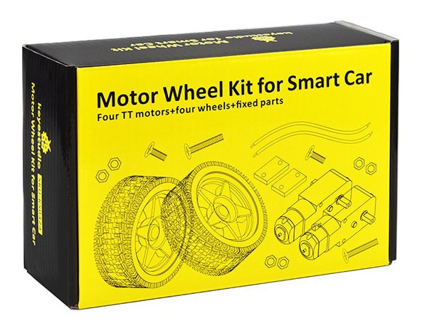Motor wheel kit της Keyestudio για smart car. Το κιτ περιλαμβάνει 4x DC geared motors, 4x τροχούς, 4x holders, βίδες εγκατάστασης και καλώδια σύνδεσης 200mm.