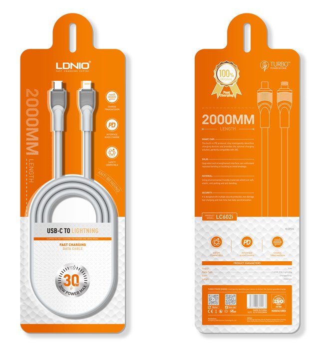 LDNIO καλώδιο Lightning σε USB-C LC602I, 30W PD, 2m, γκρι