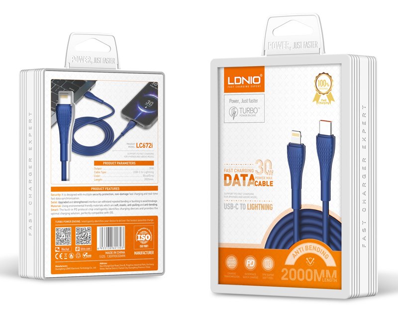LDNIO καλώδιο Lightning σε USB-C LC672I, 30W PD, 2m, μπλε