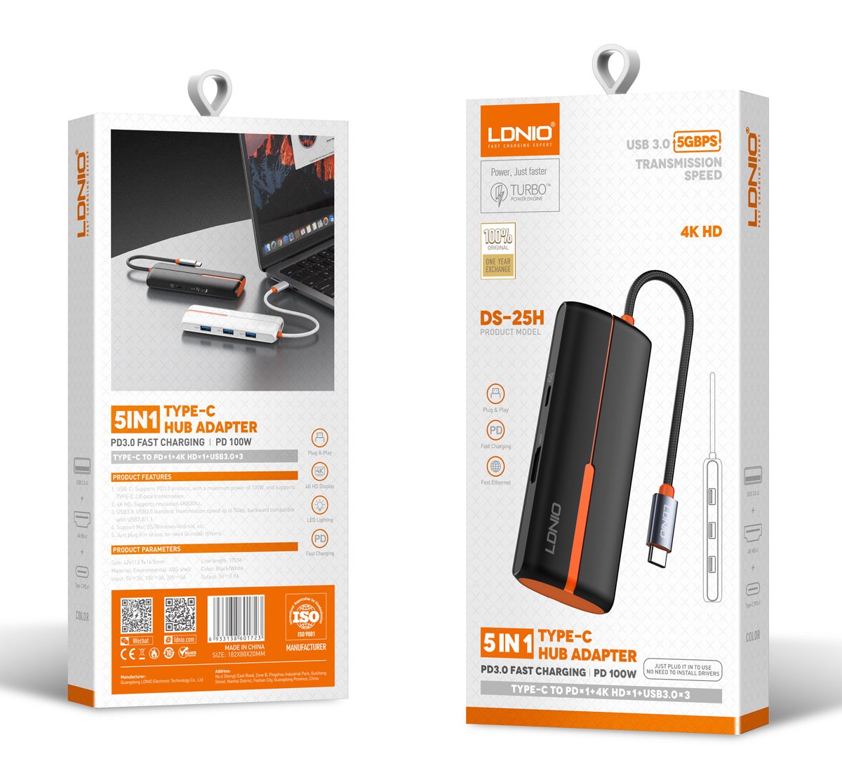 LDNIO docking station DS-25H, 5 θυρών, USB-C σύνδεση, 4K, 100W PD, μαύρο